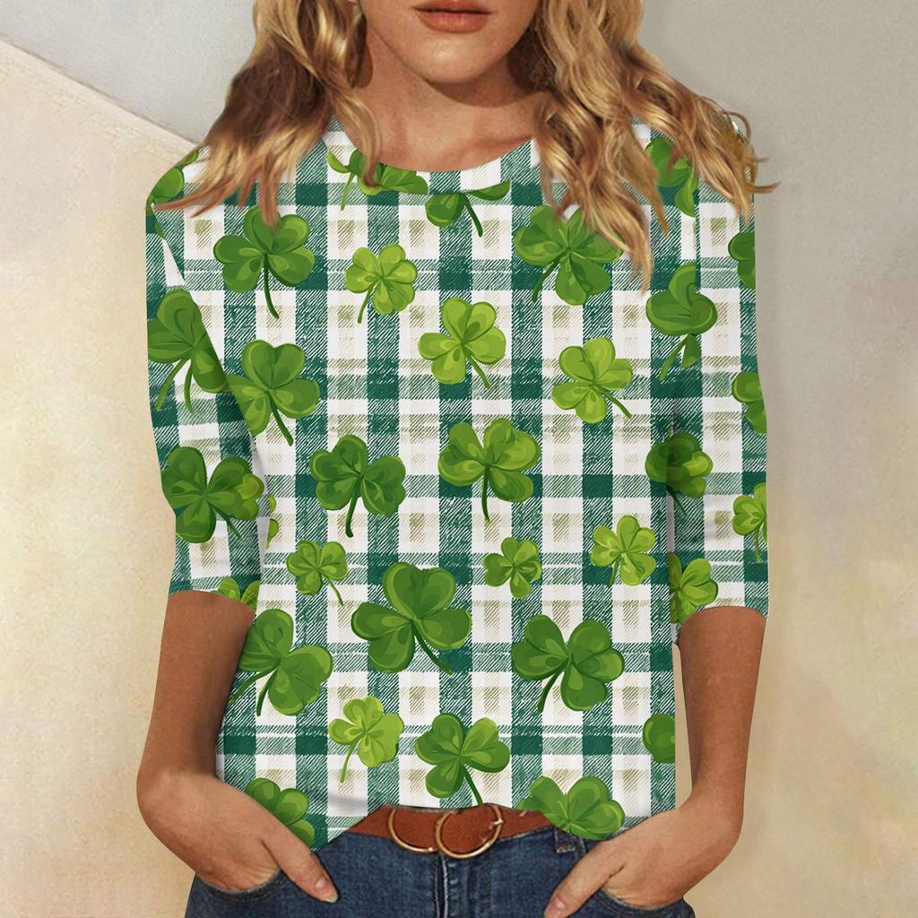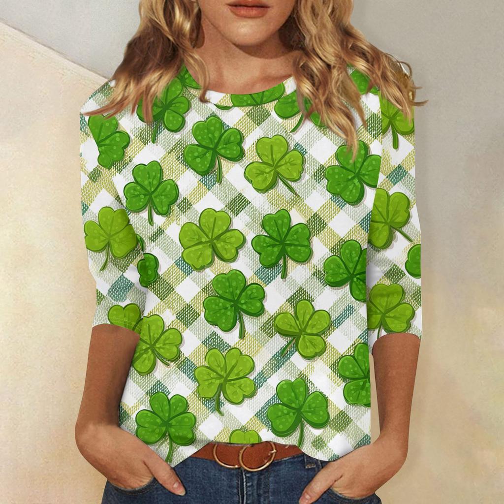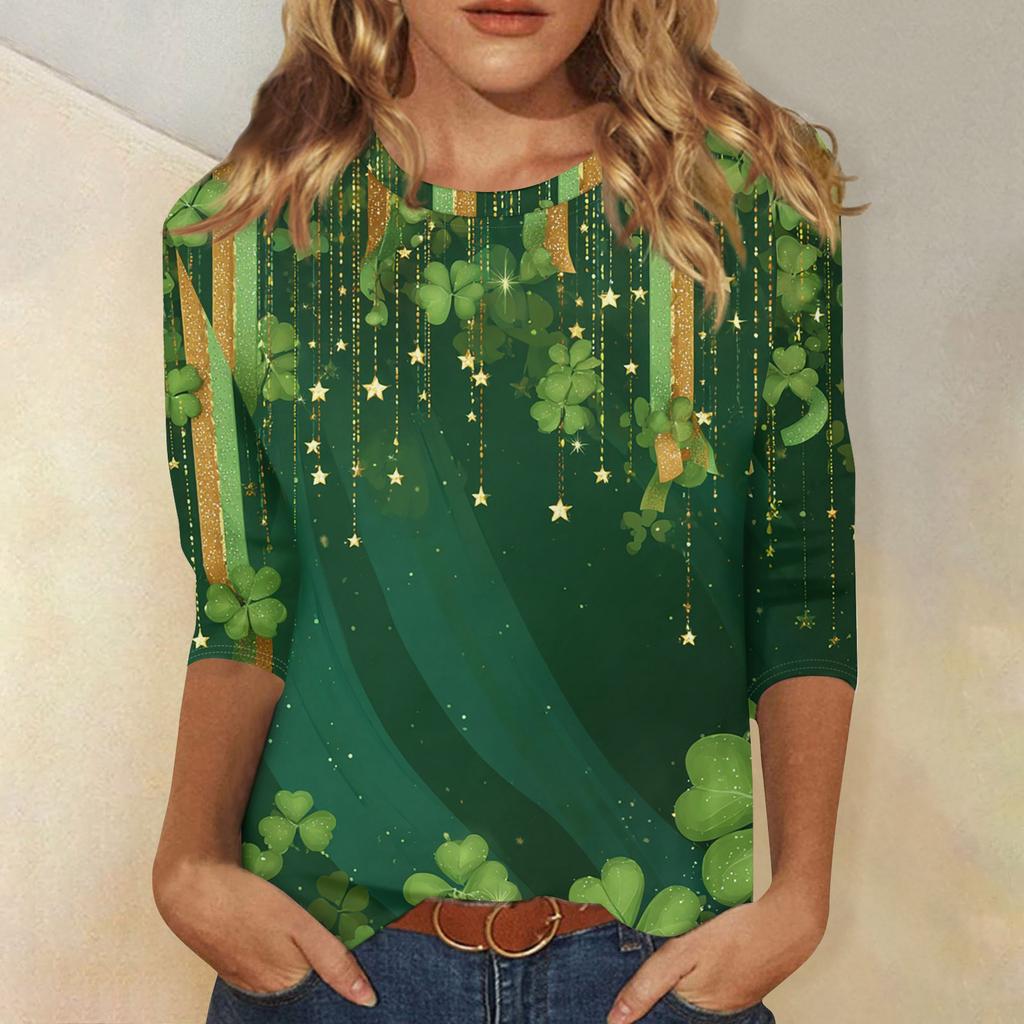 Женская модная повседневная уличная одежда. Топ-футболка с принтом ко Дню Святого Патрика, рукав три четверти