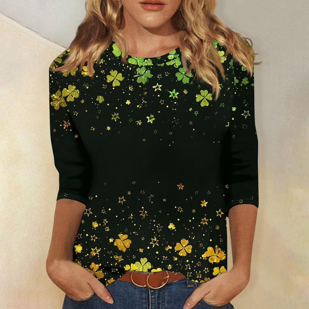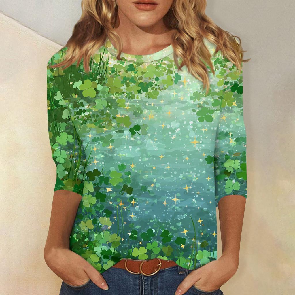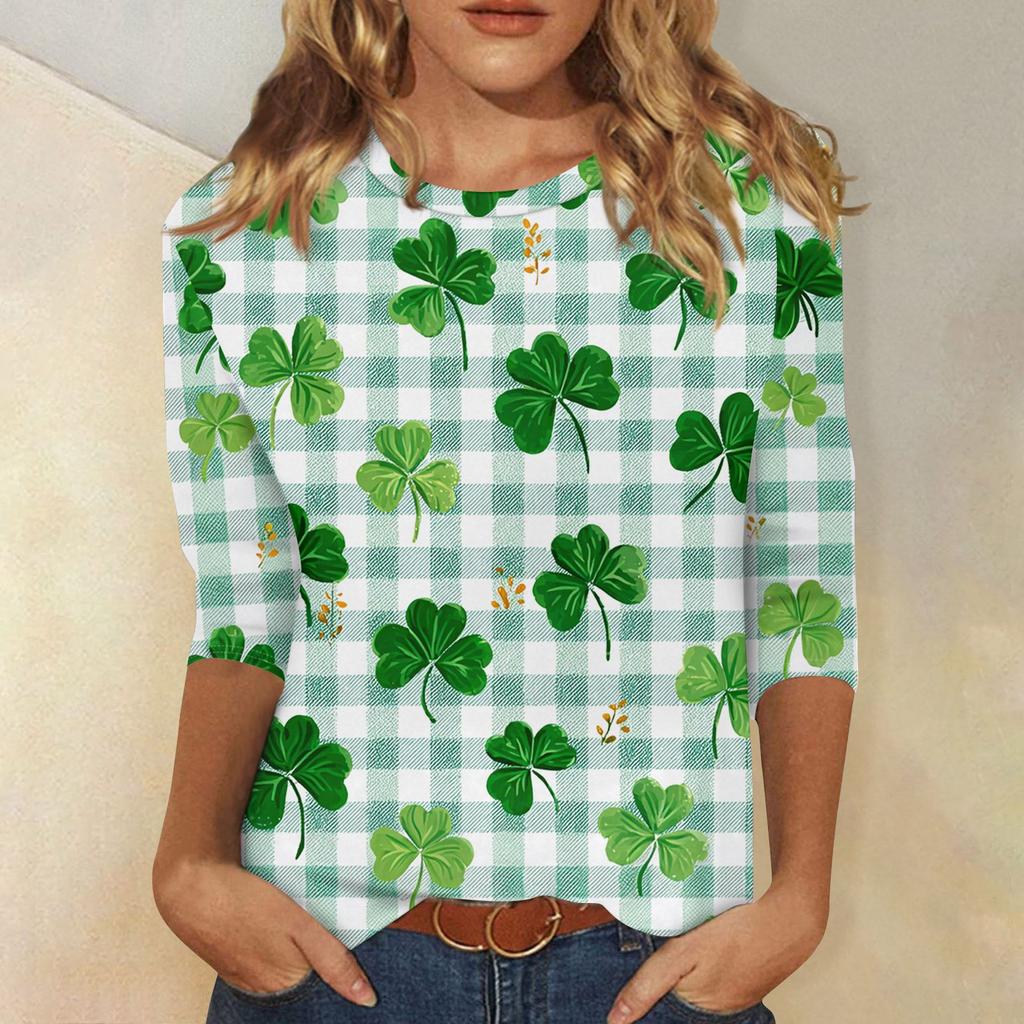Женская модная повседневная уличная одежда. Топ-футболка с принтом ко Дню Святого Патрика, рукав три четверти