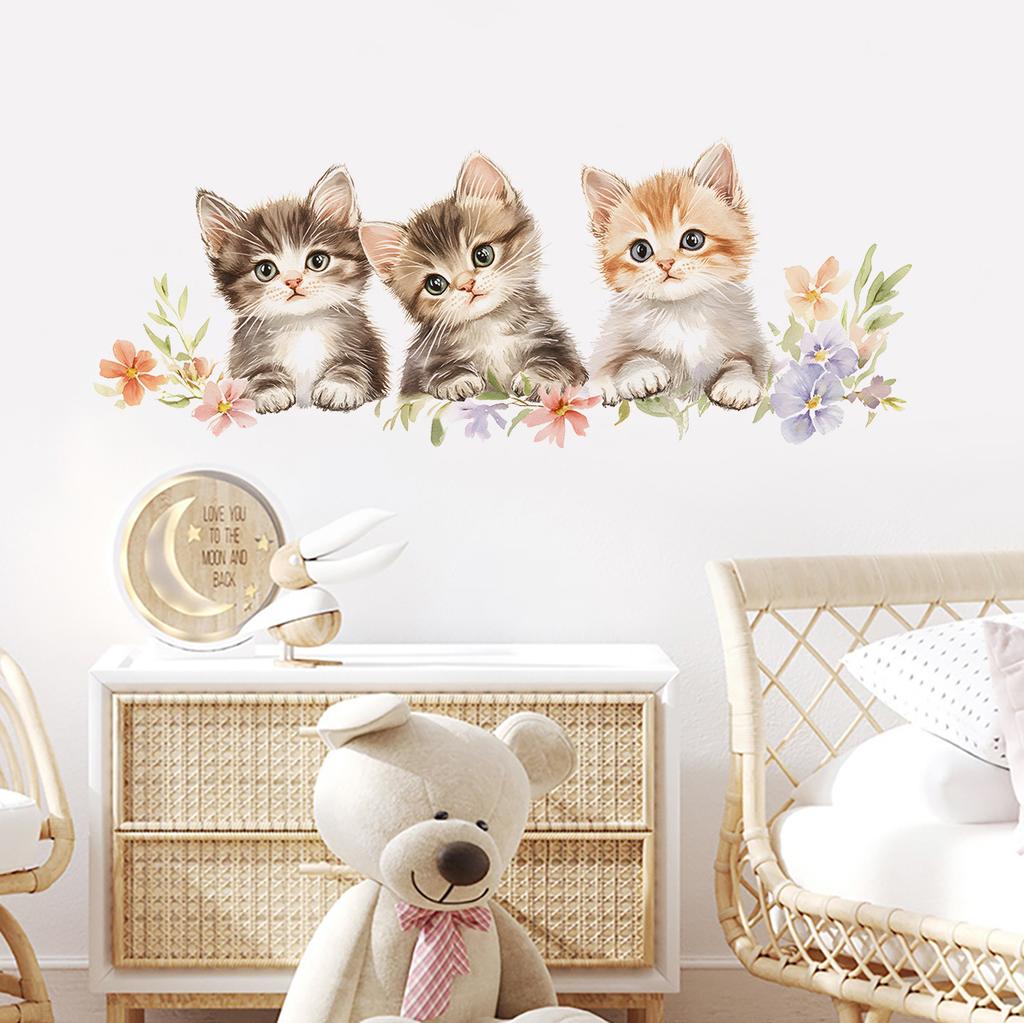 Мультяшный Милый Настенный Стикер Три Котенка Детская Комната Гостиная Украшение Стен Самоклеящийся Домашний Декор