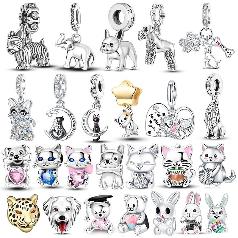 925 Silver Animal Charms Beads for DIY Bracelet Lovely Dog Cat Pendants Jewelry for Women