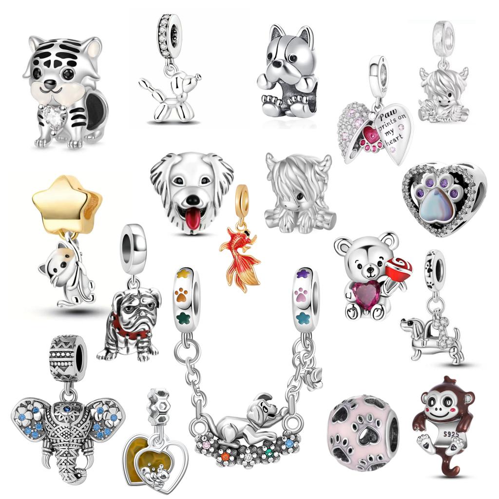 Серебро 925 пробы Подвеска в виде когтя собаки Браслет Шарм Талисман для мужчин женщин Подарок на день рождения Животное Ювелирные изделия Тигр Обезьяна Слон Еж