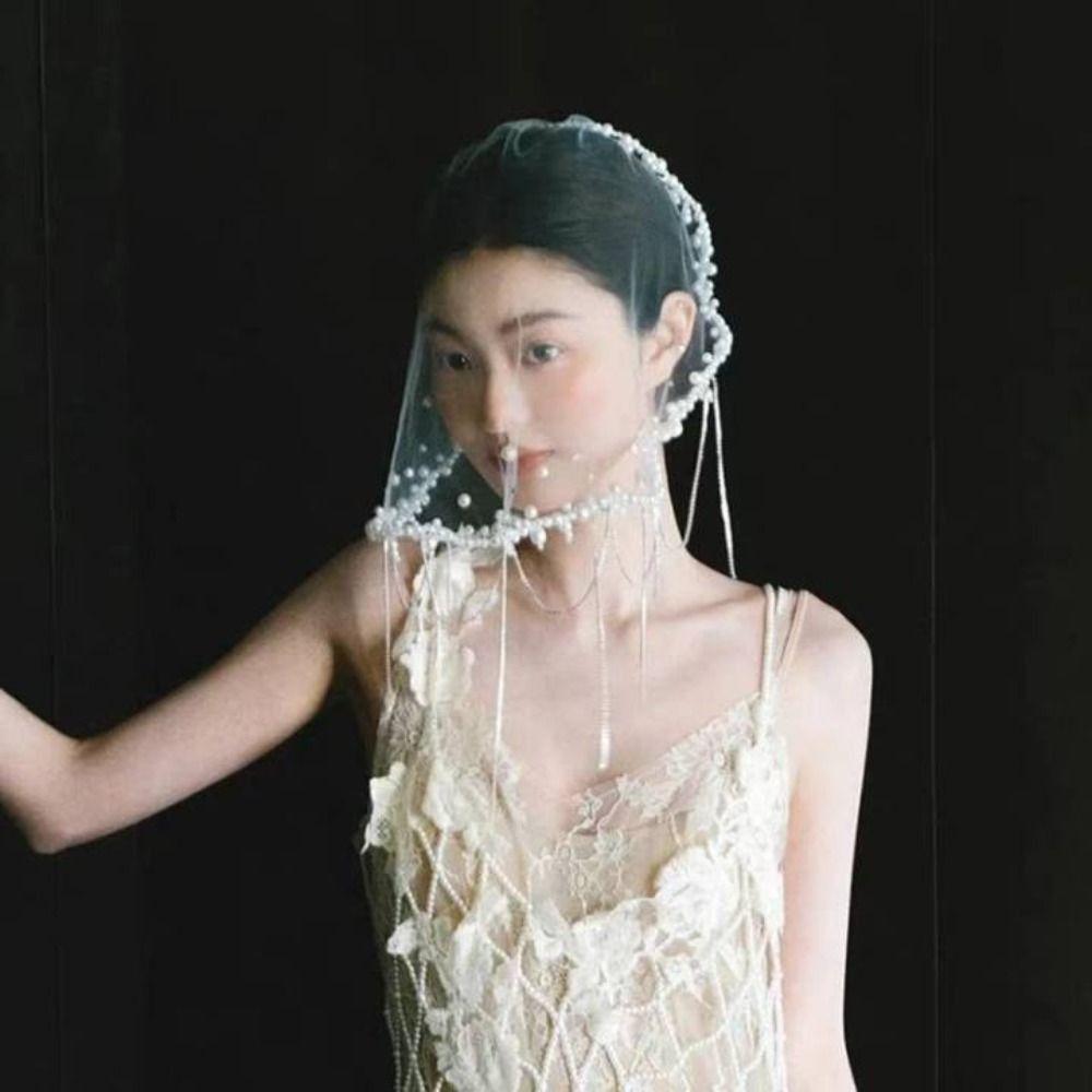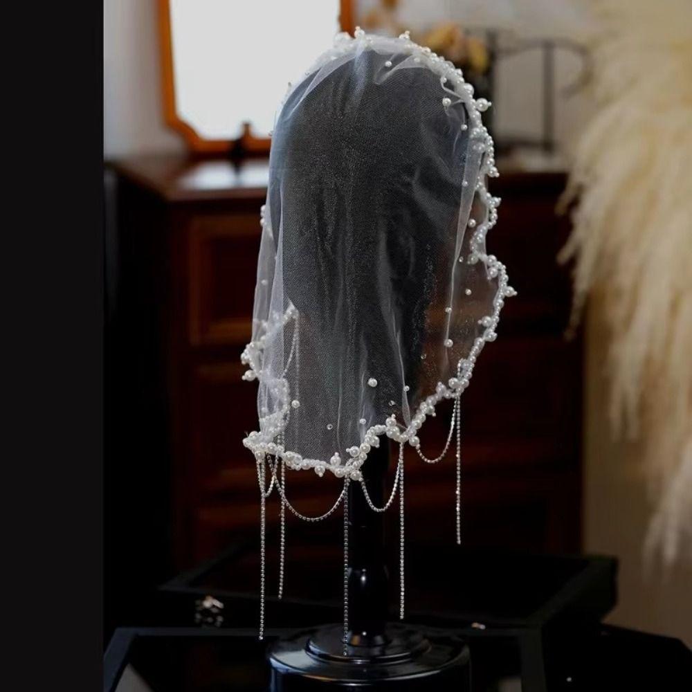 Pearls Beads Brides Veil Short Bride Head Gauze Vintage Wedding Veils Headwear