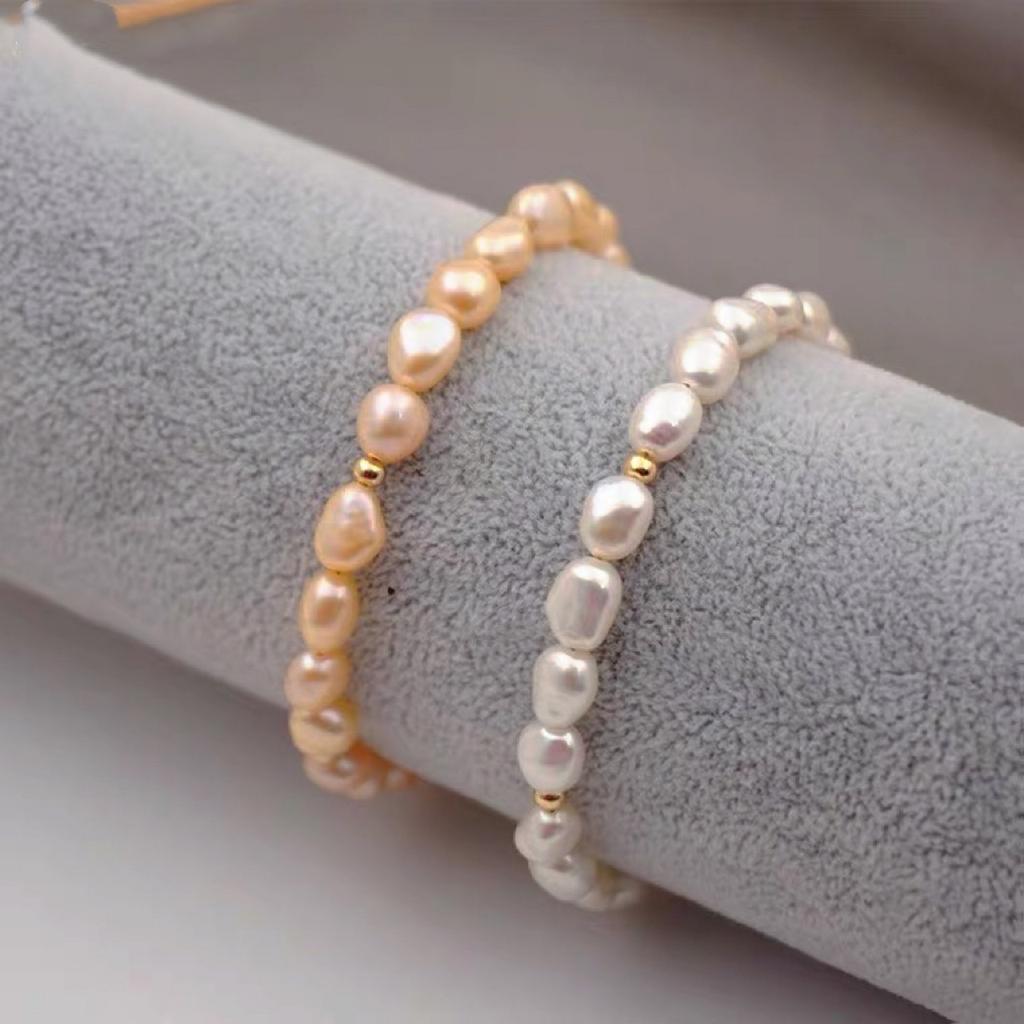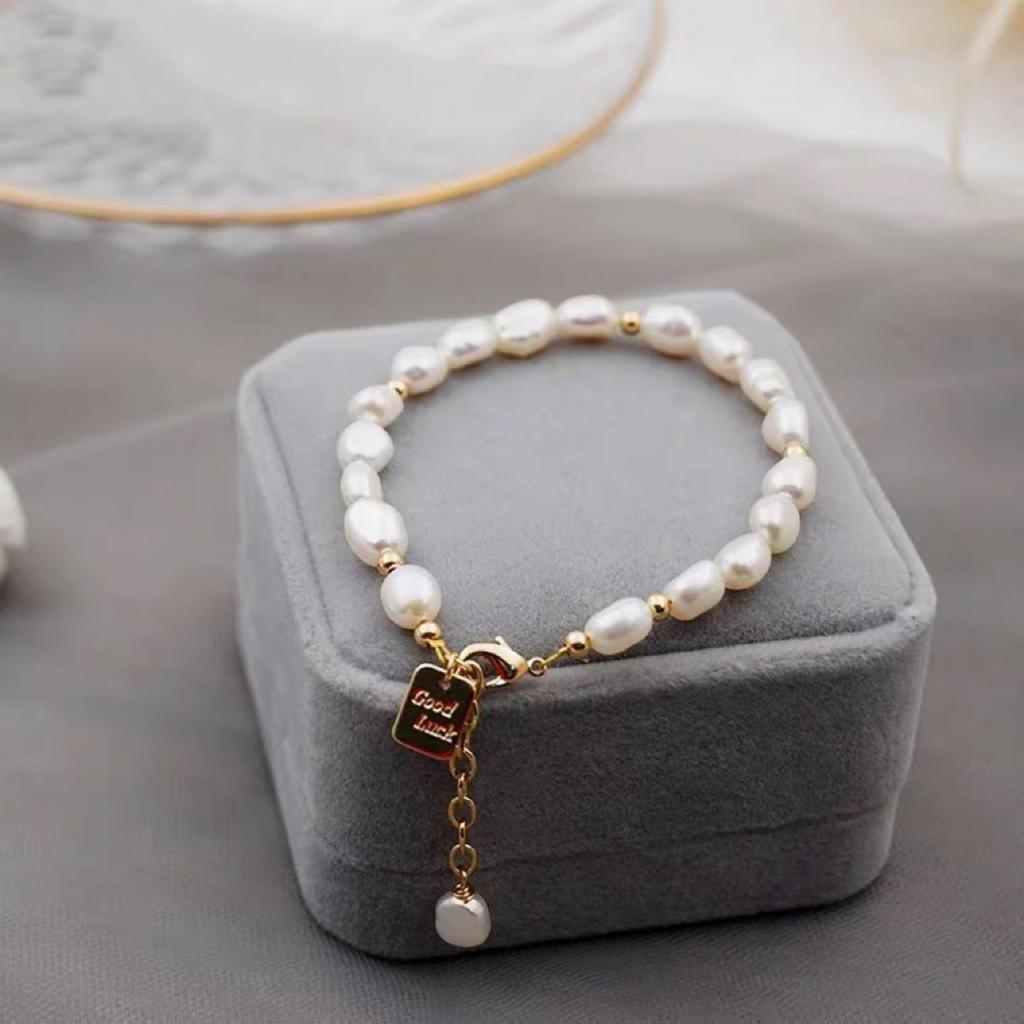 Браслет из пресноводного жемчуга для девочек, браслет в стиле ретро, браслет в стиле легкой роскоши, модный, барочный, розовый и белый, украшение
