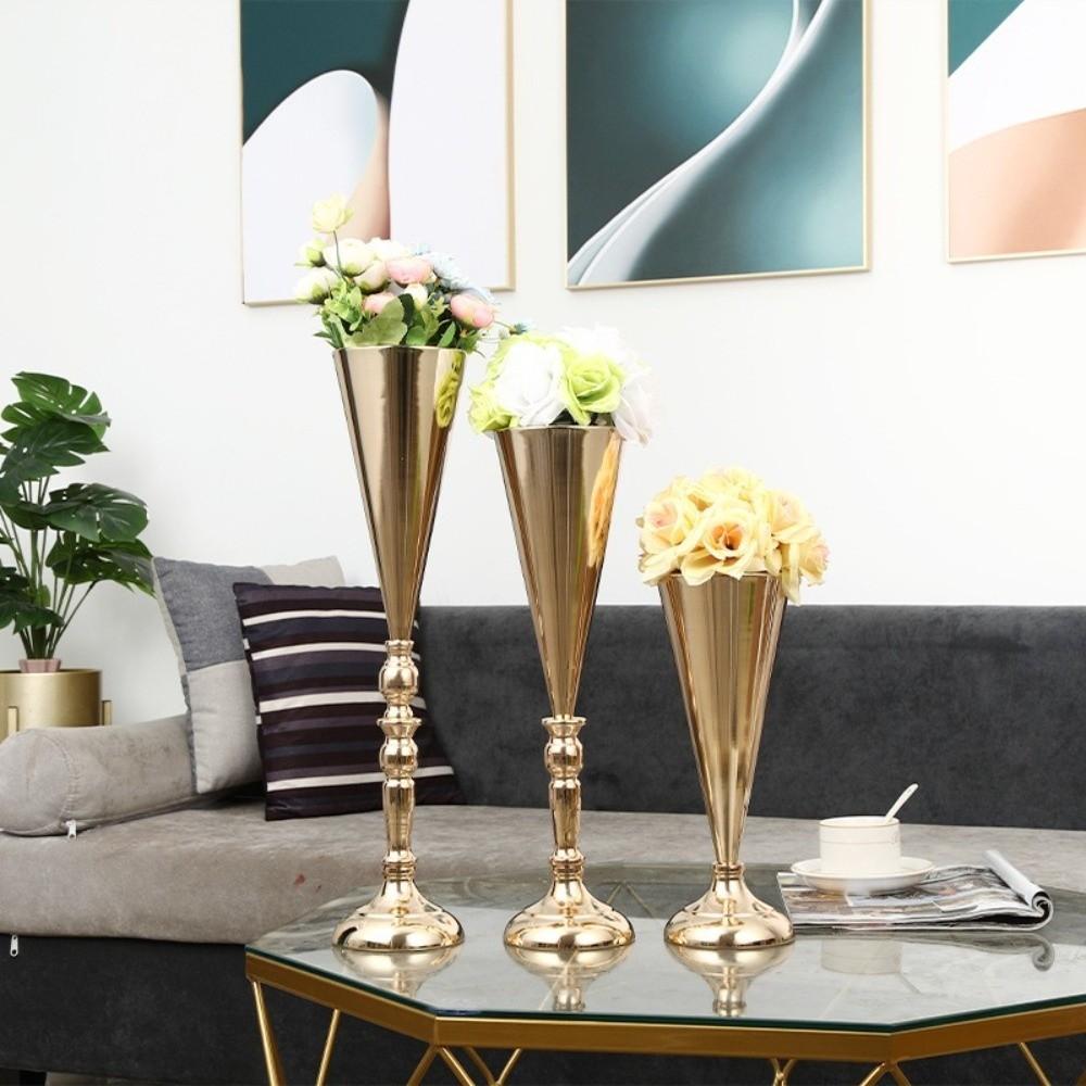 Golden Silver Metal Vases European Style Candle Holder Elegant Centerpiece Vases Holiday