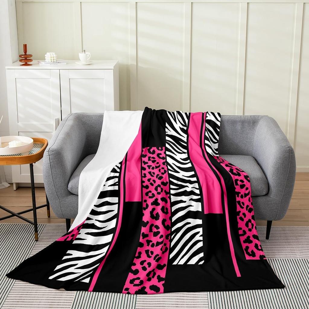 Feelyou Leopard Zebra Plush Throw Blanket x Kids Cheetah Pink White Black Flannel Fleece All Season Breathable Bed Blanket Anima