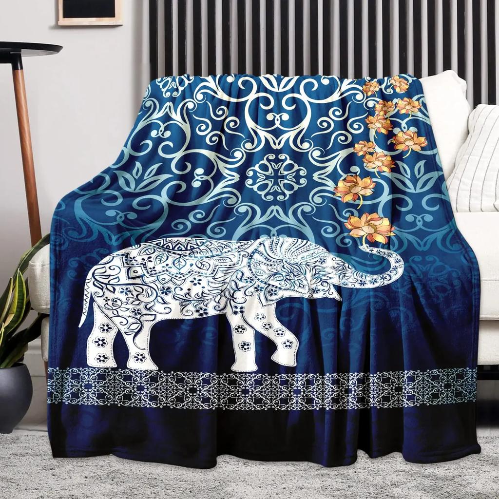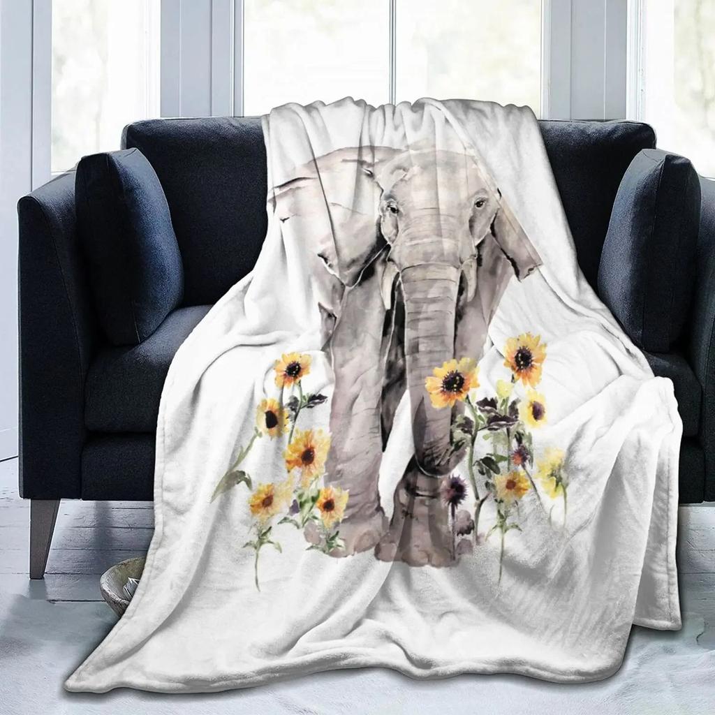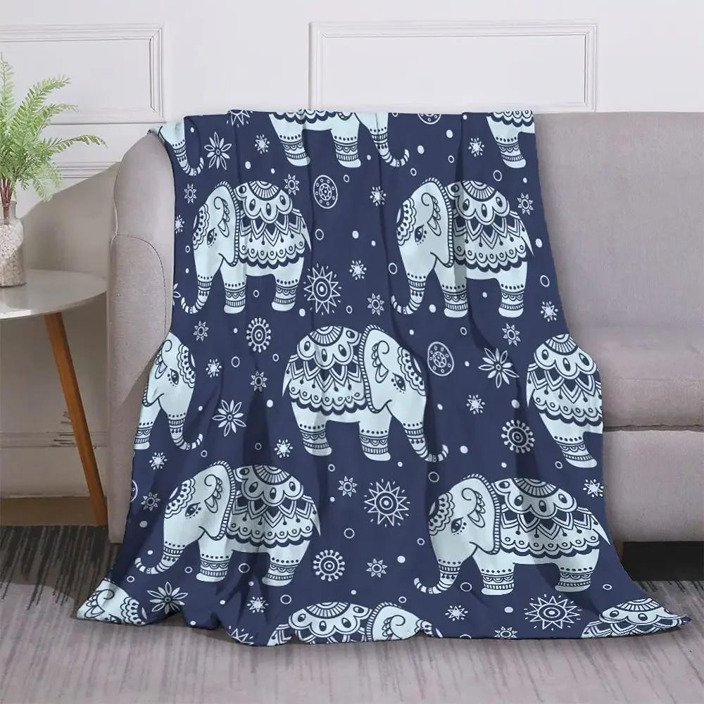 Cute Elephant Print Throw Blanket African Animals Warm Cozy Flannel Home Decor Colorful Dreamy Bubbles Pattern