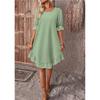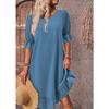 Женское Винтажное Хлопково-льняное Платье-трапеция Средний Рукав Круглый Вырез Однотонное Свободное Женское