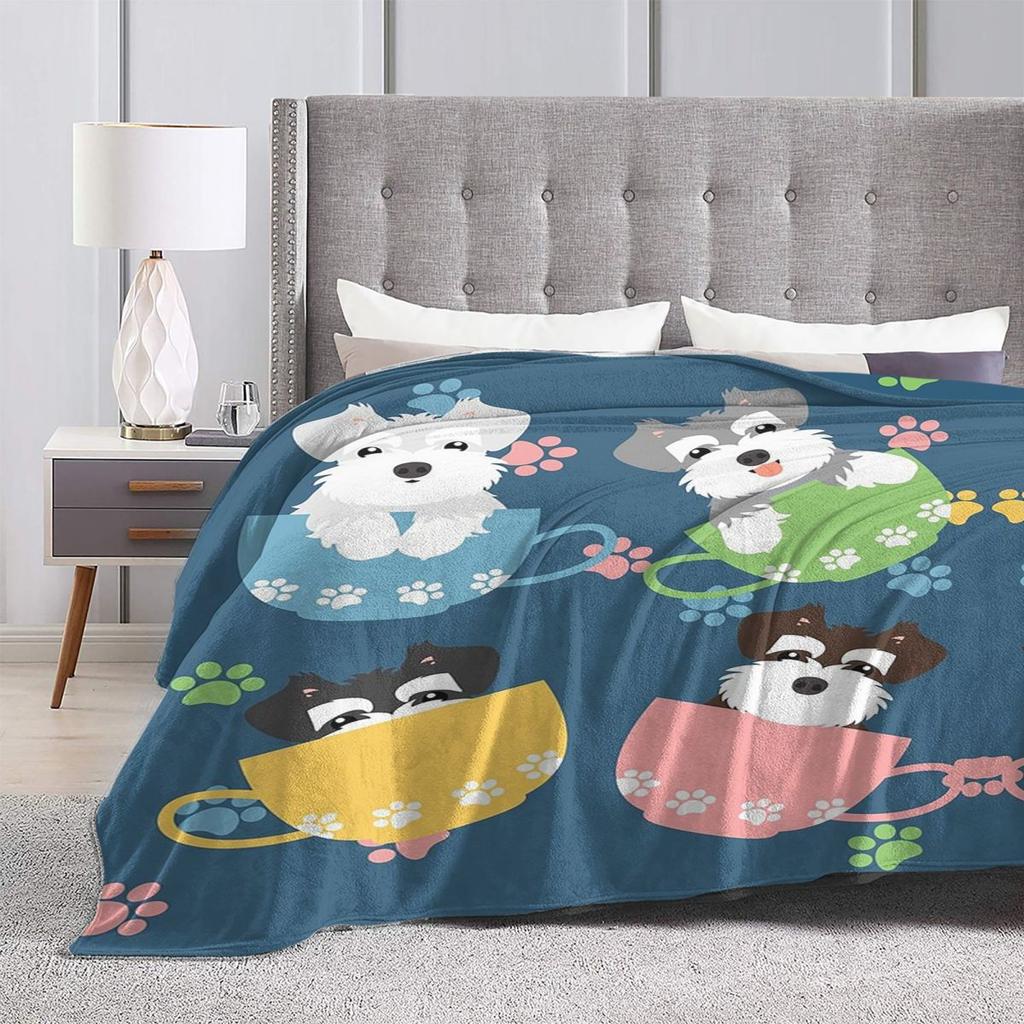 Cute Teacup Miniature Schnauzer Puppies Blankets Soft Warm Flannel Throw Blanket Bedspread for Bed Living room Picnic Home Sofa
