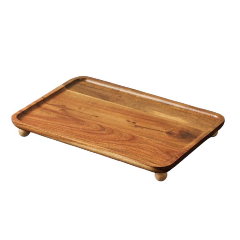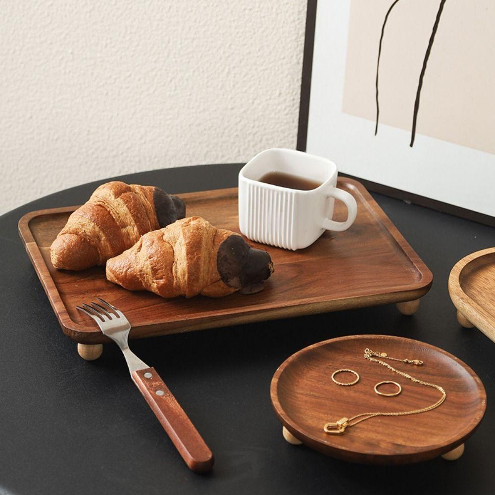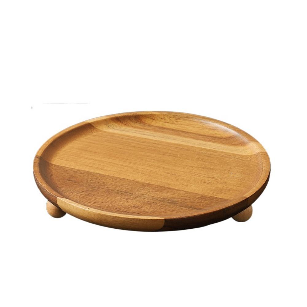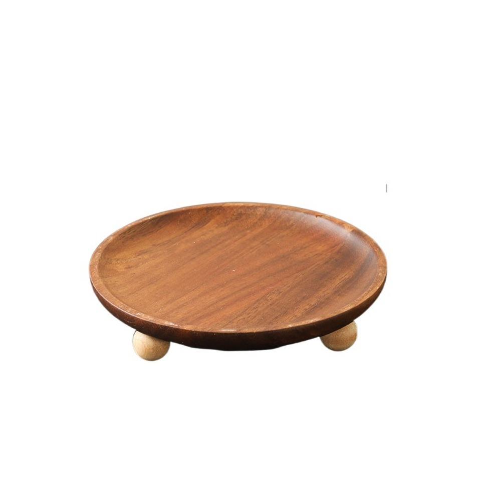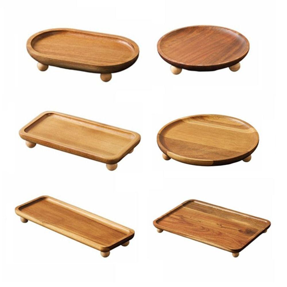 Портативный кухонный сервировочный поднос Массив дерева Тарелка для чая и кофе Деревянная подставка на ножке Домашний декор