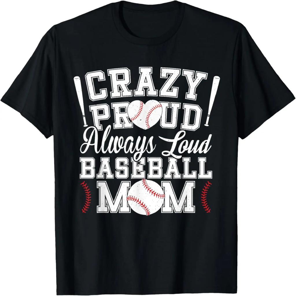 Crazy Proud Always Loud Funny Baseball Mom Saying Graphic T-Shirt