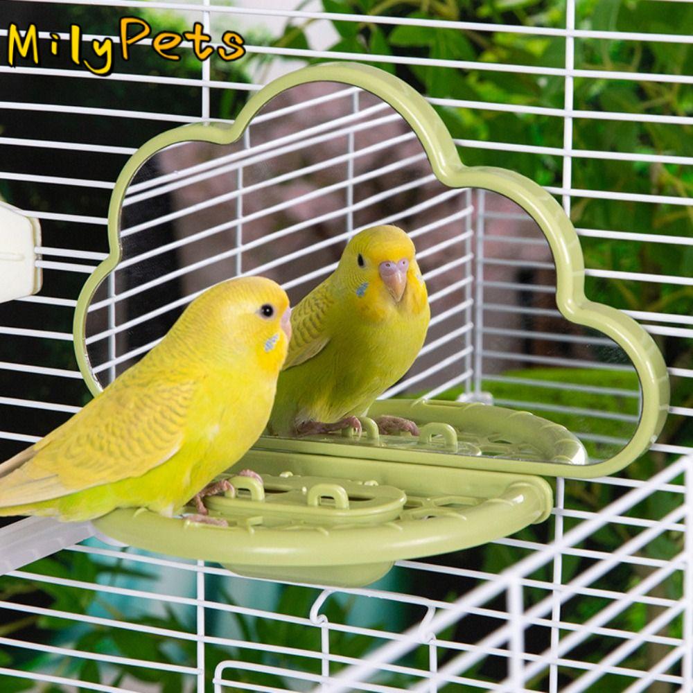 Многофункциональное зеркало для птиц в форме облака, экономит место, прочная жердочка-подставка для птиц с кормушкой, кормушки для попугаев, платформа для отдыха