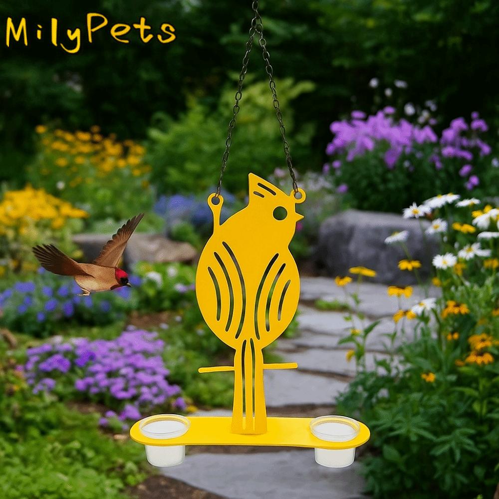 Weatherproof Hanging Oriole Bird Feeder Decorative Spill Proof Metal Bird Feeding Platform with S Hook PP Bowls