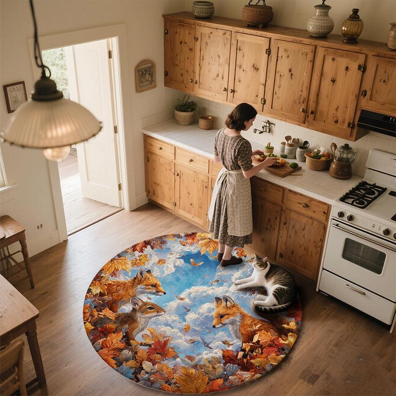 Круглый ковер с лисой, Ковер для гостиной, спальни, дивана, игровой комнаты, Нескользящий коврик для пола