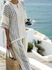 Женский комплект из топа с короткими рукавами и брюк широкого кроя в черную полоску из смесового льна для летнего отпуска