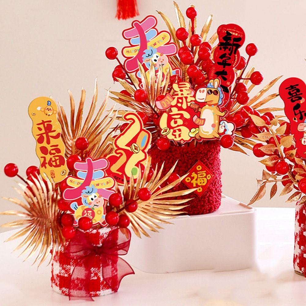 Креативное Новогоднее Счастливое Украшение в Китайском Стиле Имитация Цветка Благословения Ведро Традиционное Лучшее Благословение