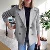 Женский короткий пиджак-блейзер с вязаными рукавами, лацканами с вырезом и застежкой на две пуговицы — купить товар онлайн с бесплатной доставкой по всему миру!