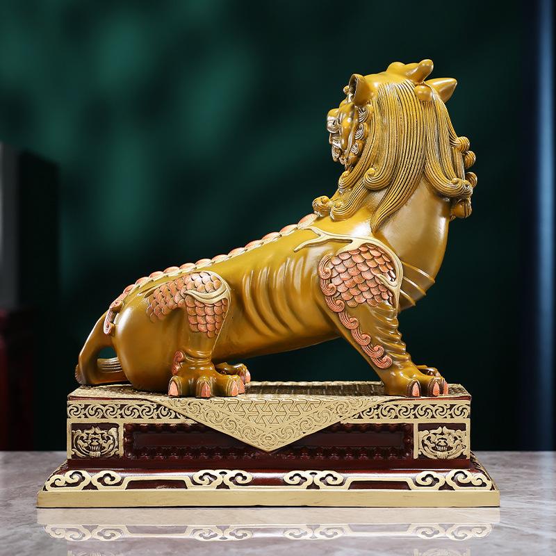 Color Copper Listening Decoration Jiuhua Mountain King Of Tibet Mount Home Living Room Office Desk Surface Panel Handicraft Equi