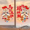 1 Pair Colorful New Year Window Stickers Paper Cut Large Size Glass Electrostatic Film Transparent Funny