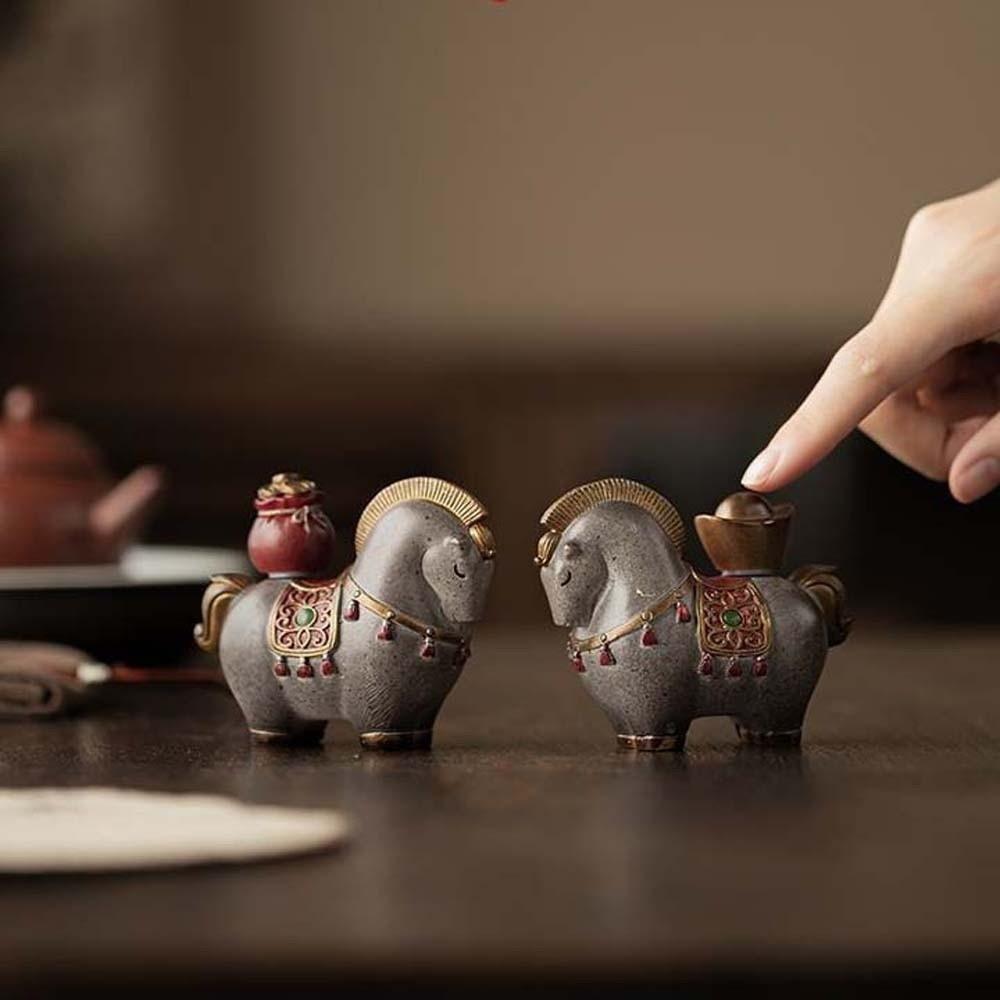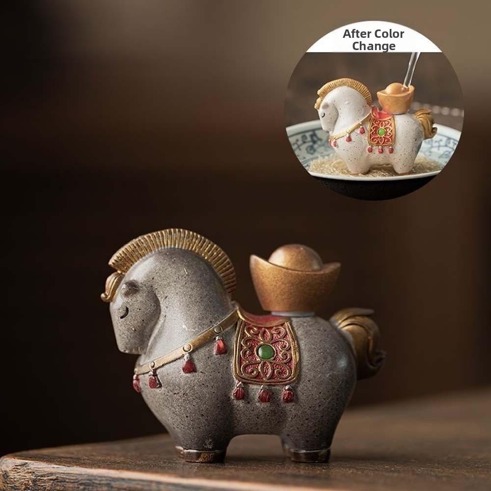 Rotatable Resin Foal Statue The Tea Favors Color-changing Horse Ornament Display Decoration