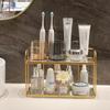 Золотая двухъярусная полка-органайзер для столешницы в ванной