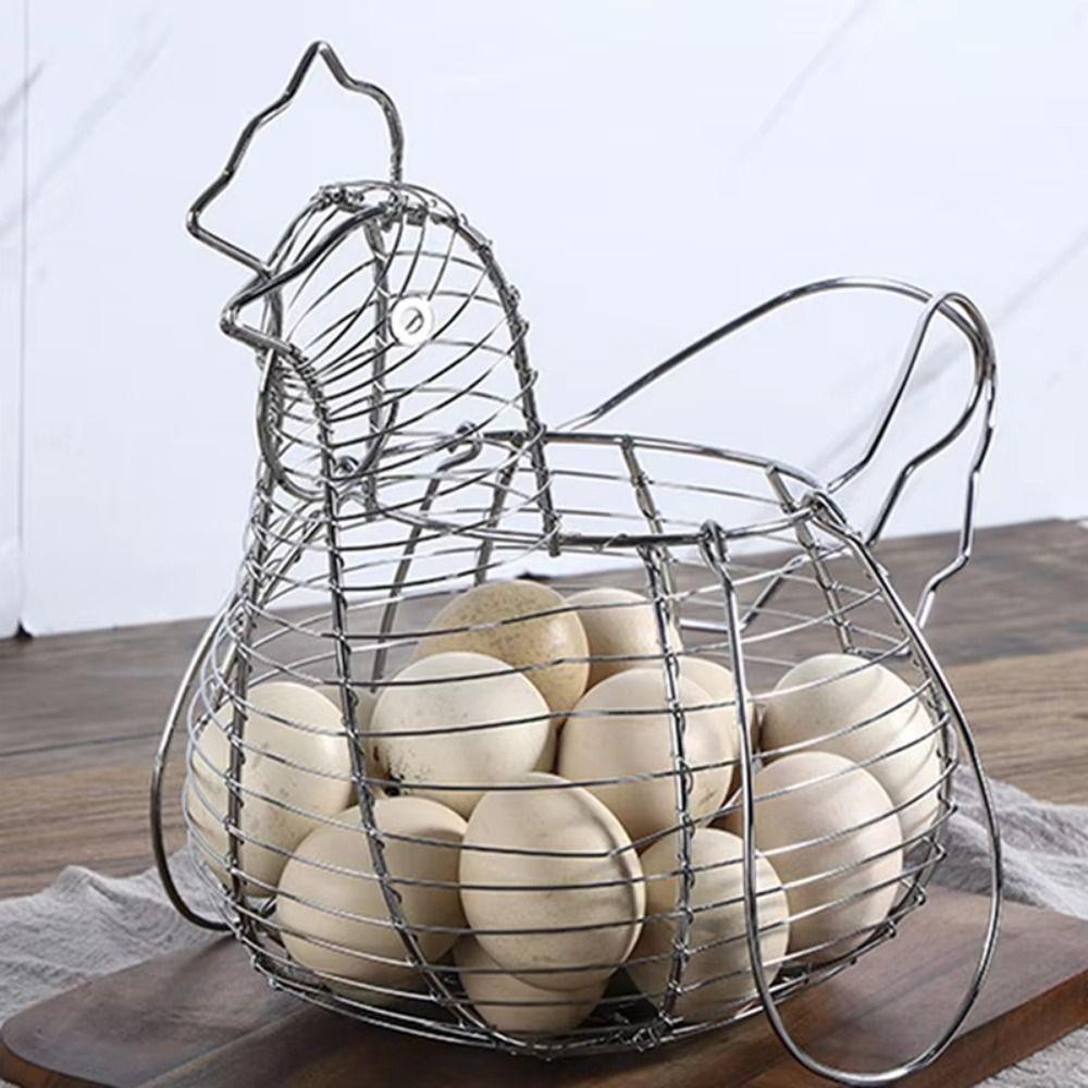 Iron Art Eggs Storage Basket Silver Eggs Organizer Rack Basket Homewares