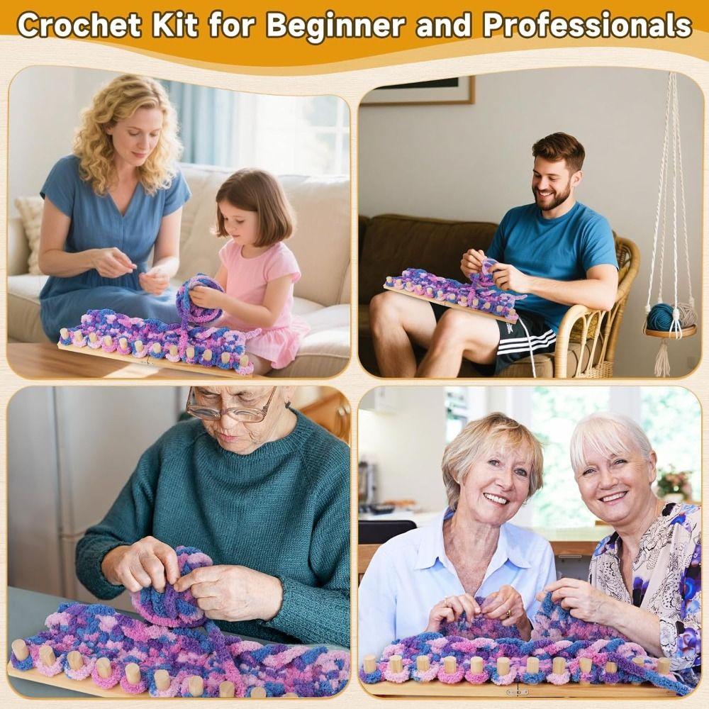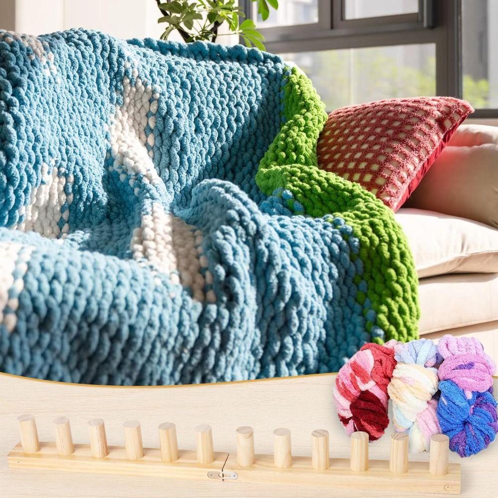 12 Pegs Wooden Knitting Loom Kit 2 Boards Hand Knitting Tool DIY Crafts