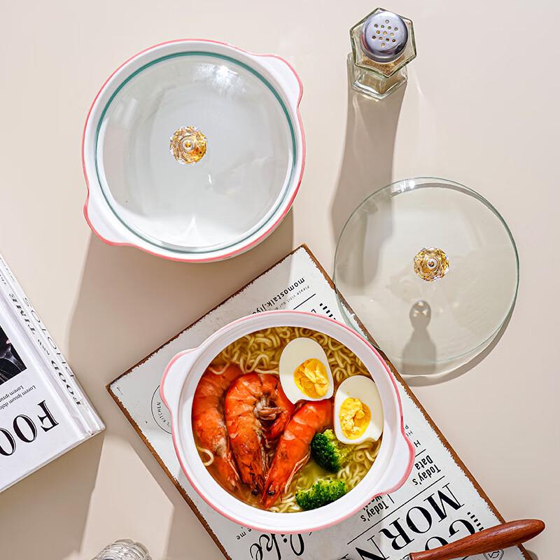Керамическая суповая тарелка-супница с двумя ручками и стеклянной крышкой в виде тюльпана