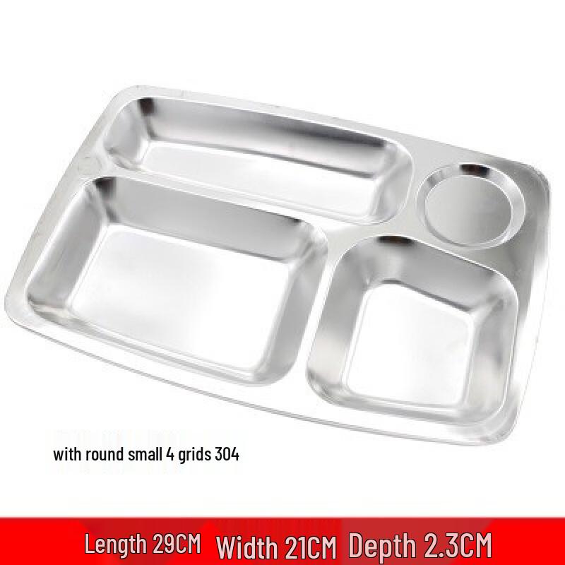 Molonana Food Grade 304 Stainless Steel 5-Compartment Round Lunch Tray
