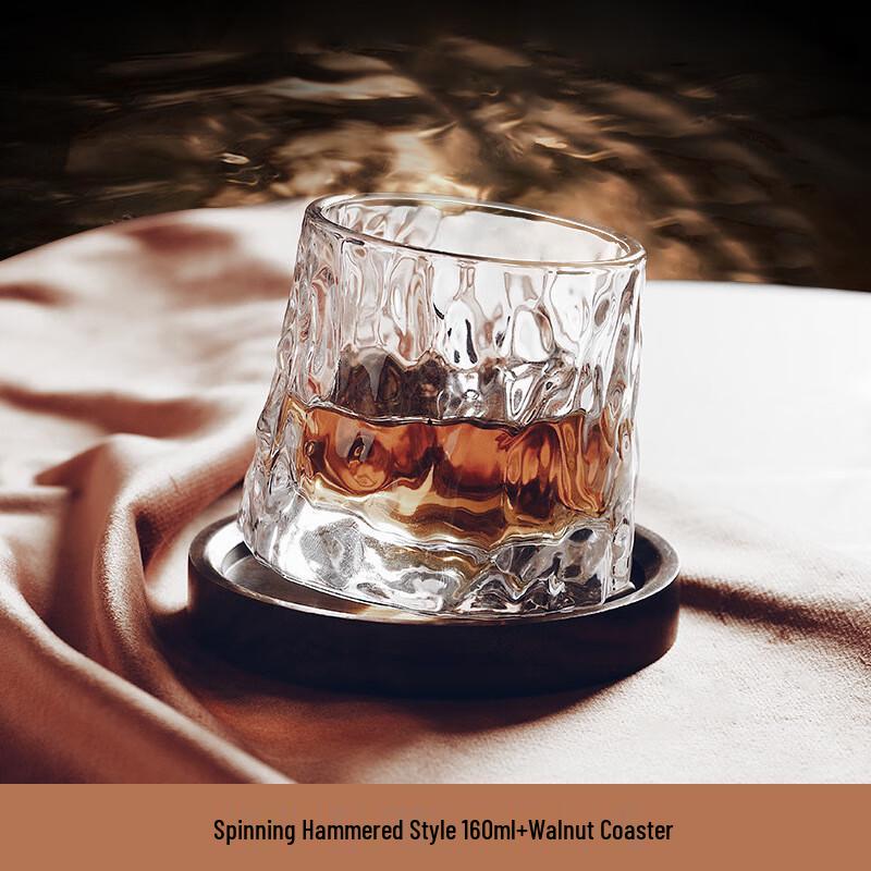 Rotating Hammered Whiskey Glass Set