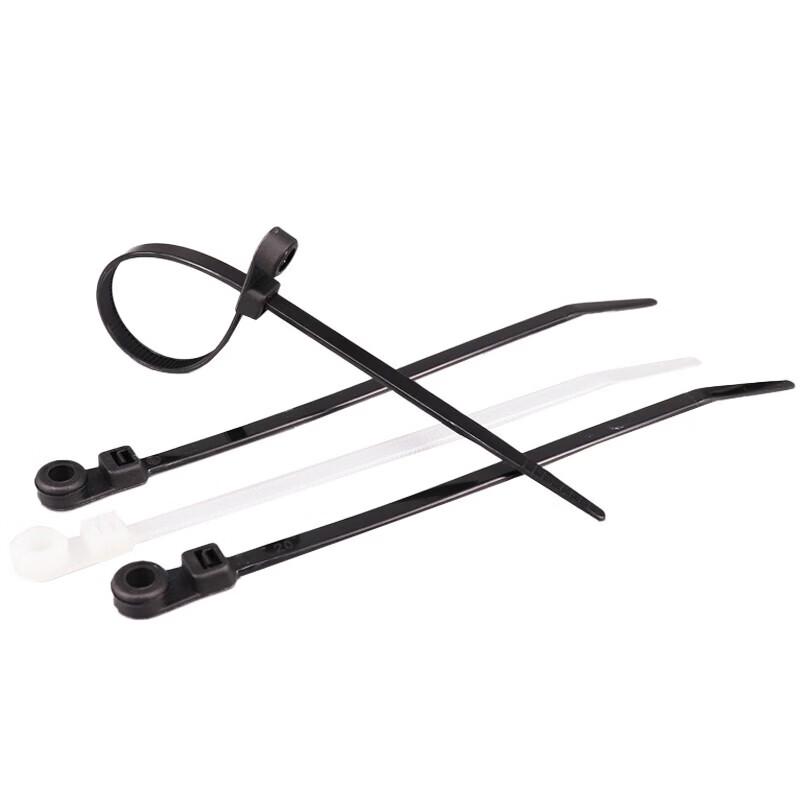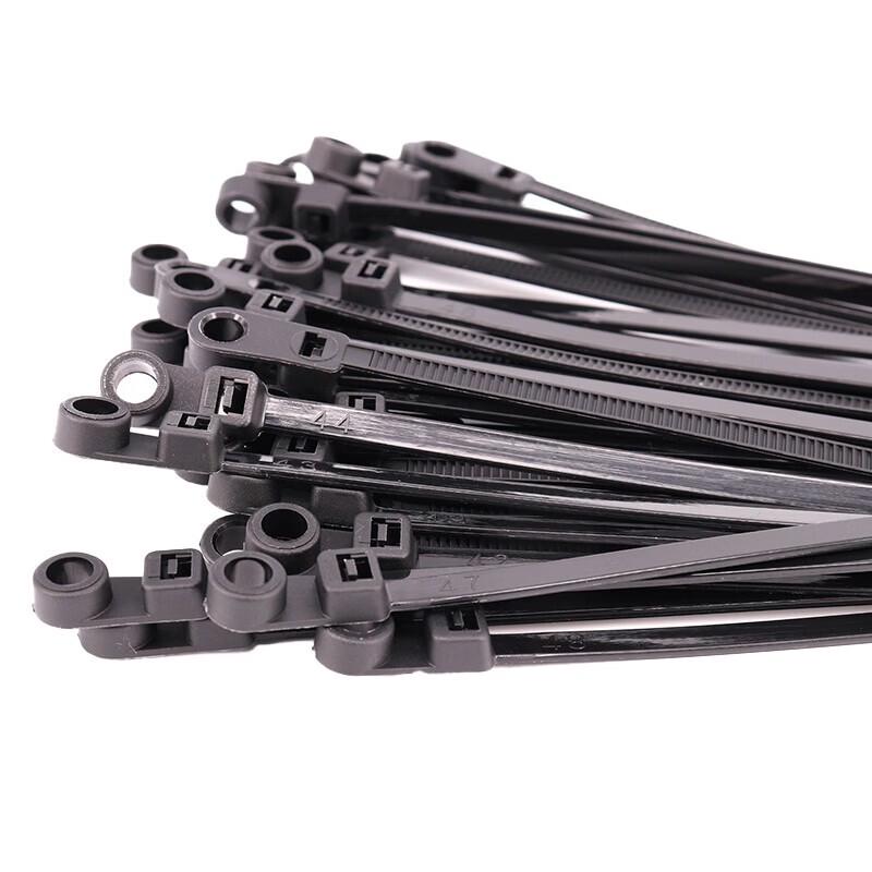 Fixed Head Black Nylon Cable Tie with Screw Mount