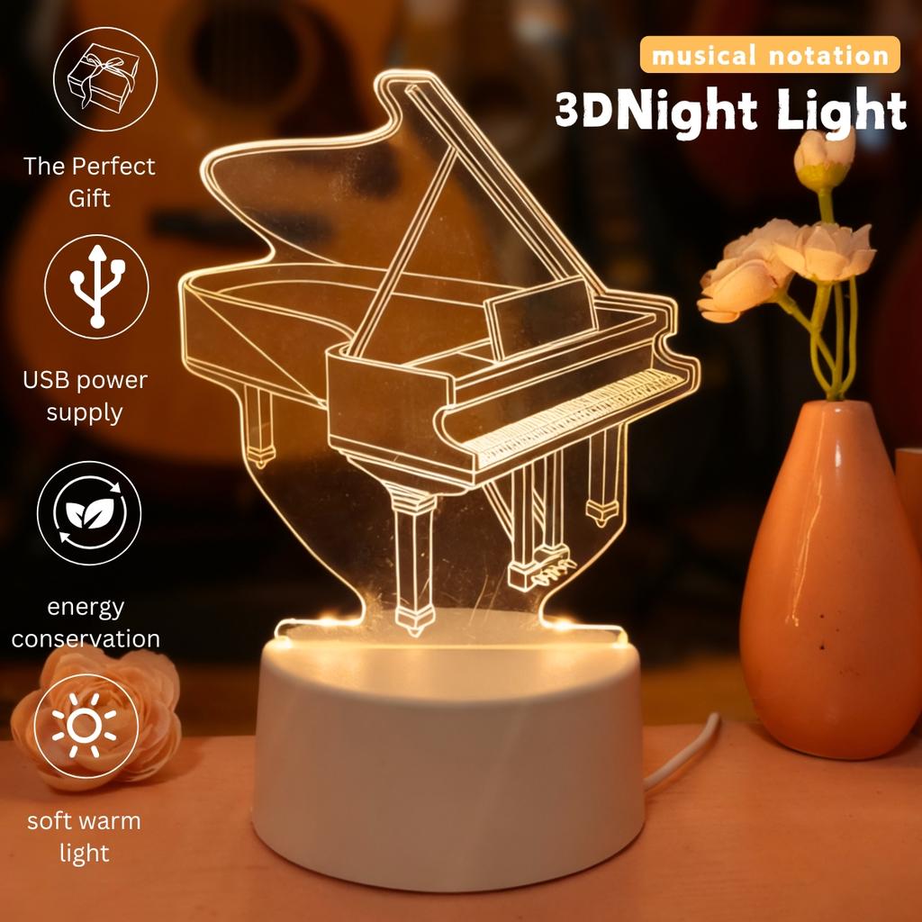 Piano 3D night light, bedroom and study atmosphere decoration USB light, Thanksgiving and holiday gifts for family and friends.
