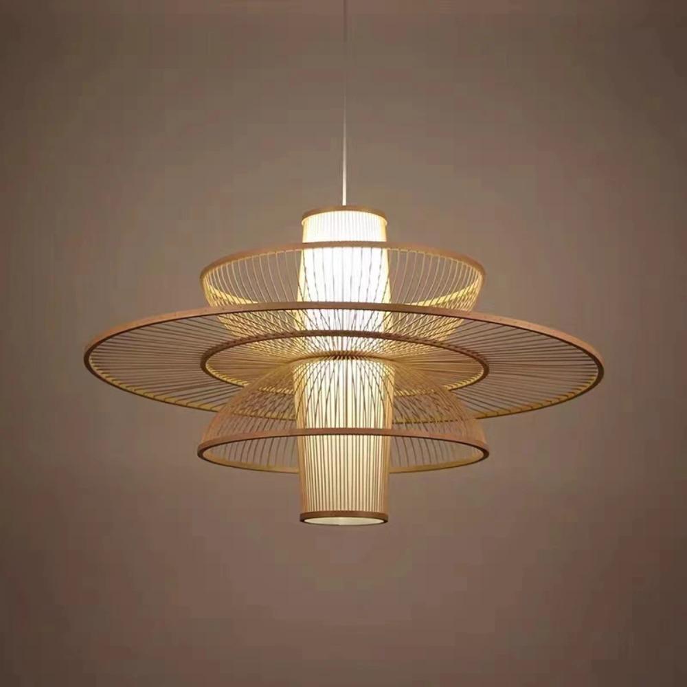 Бамбуковая пасторальная ротанговая подвесная лампа Деревянное освещение для ресторана Китайский стиль Бамбуковые декоративные подвесные светильники