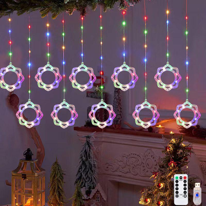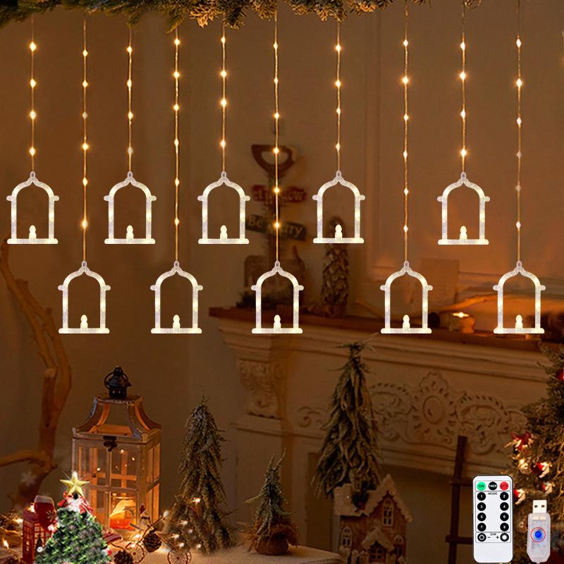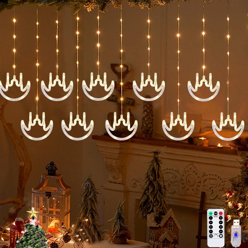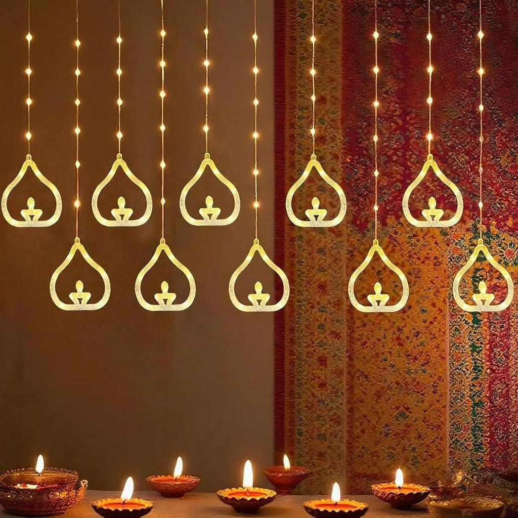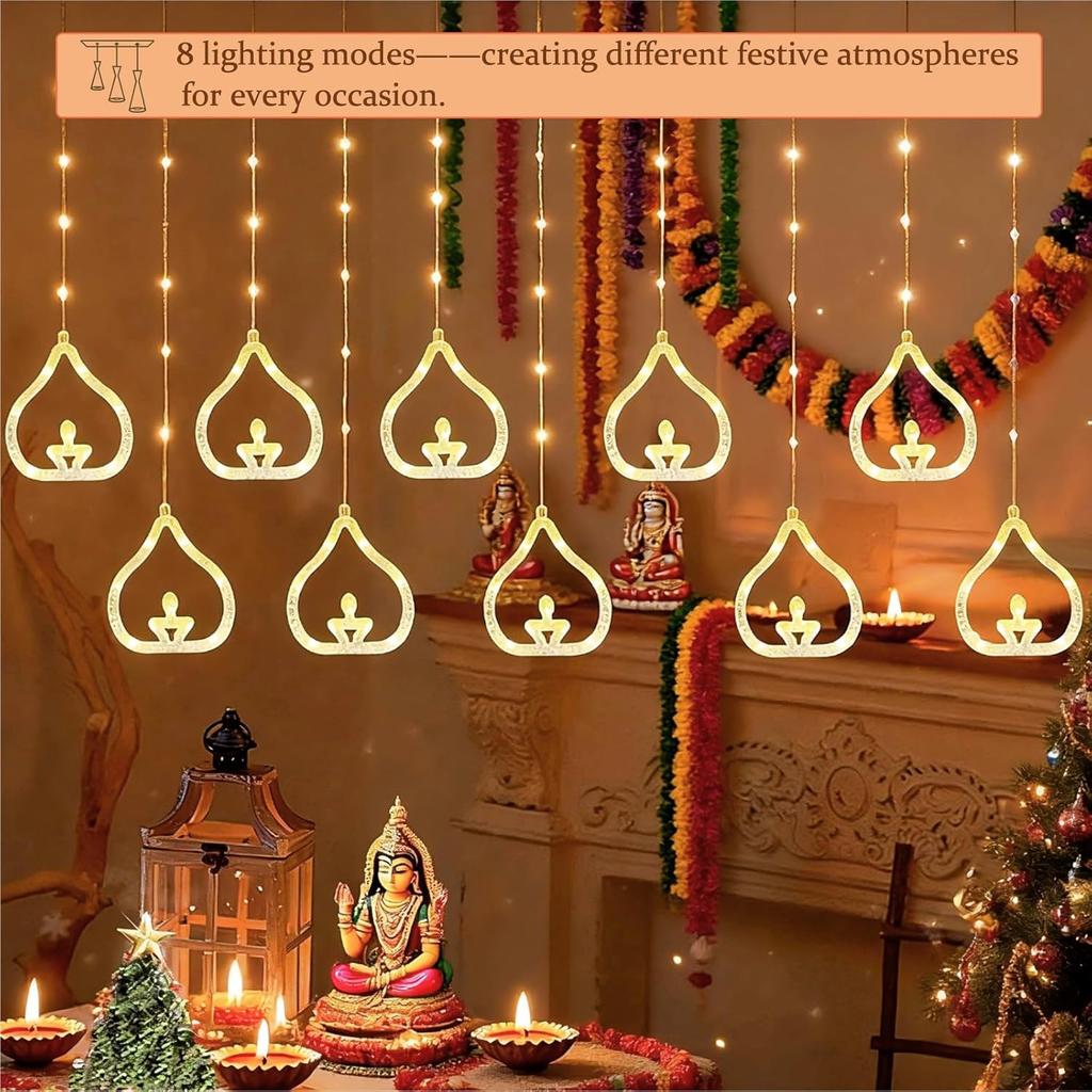Diwali Usb Curtain String Lights Hanging Diya Ring Ornaments 8 Modes Window Curtain Light Home Mandir for Muslim Holiday Decor