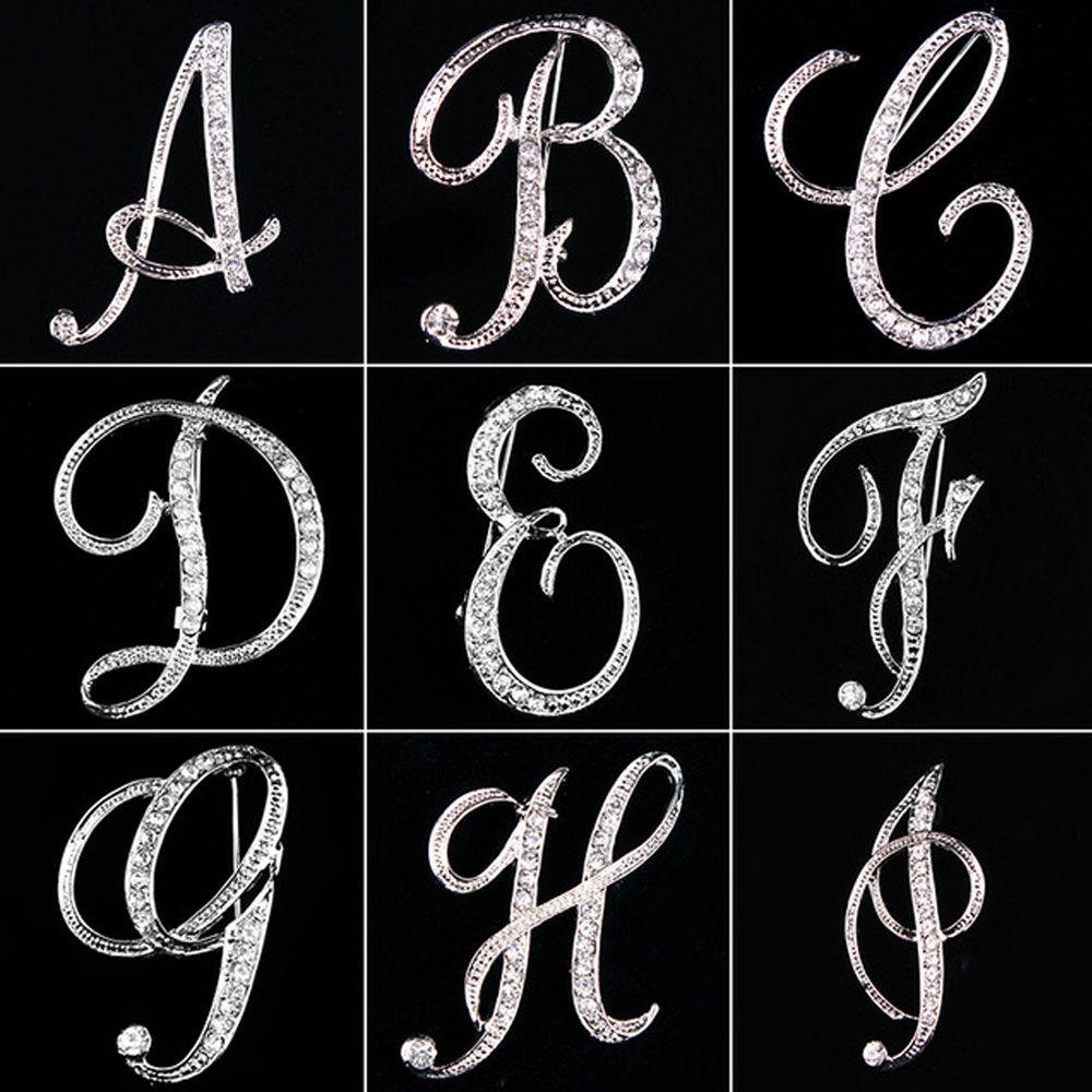 Suit Collar Accessories 26 English Letters Rhinestone Clip Initial Lapel Pin Crystal Letter Brooch — купить товар онлайн с бесплатной доставкой по всему миру!
