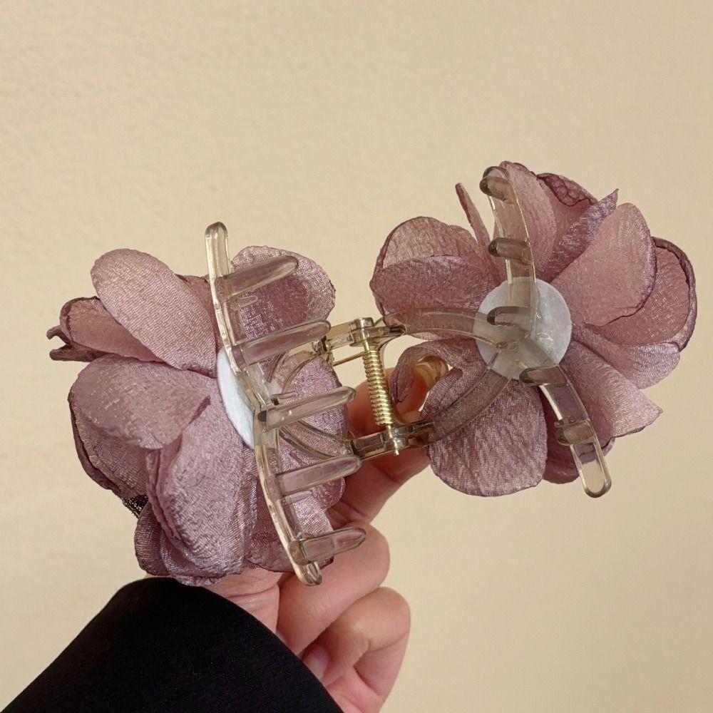 Cloth Simulation Flower Hair Claw Mesh Flower Claw Clip Fashion Rose Shark Clip Summer