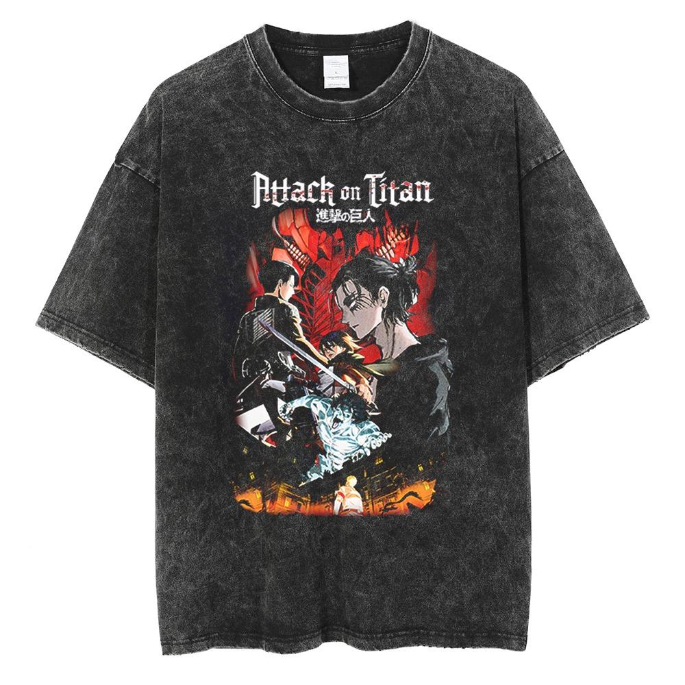 Anime Attack On Titan Eren Jaeger Print T-shirts Tee Men Women Vintage Manga Oversized Casual T Shirt Harajuku Male Tshirt