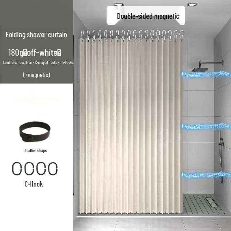 Ansha Magnetic Folding Shower Curtain with Adjustable Rod