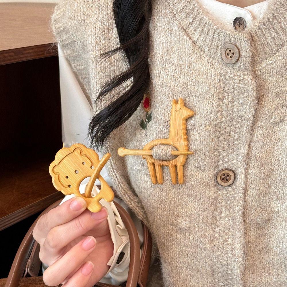 Брошь-булавка на свитер Животное Лев Лошадь Пони Модная Деревянная Брошь Подарок