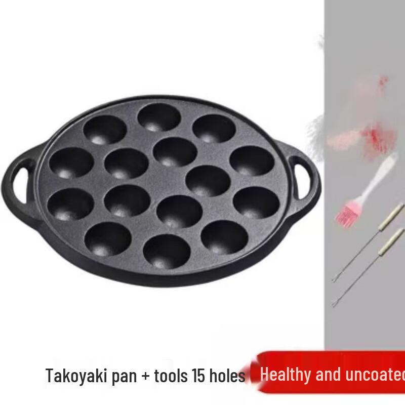 ZISIZ 15-Hole Cast Iron Takoyaki Pan with Tools