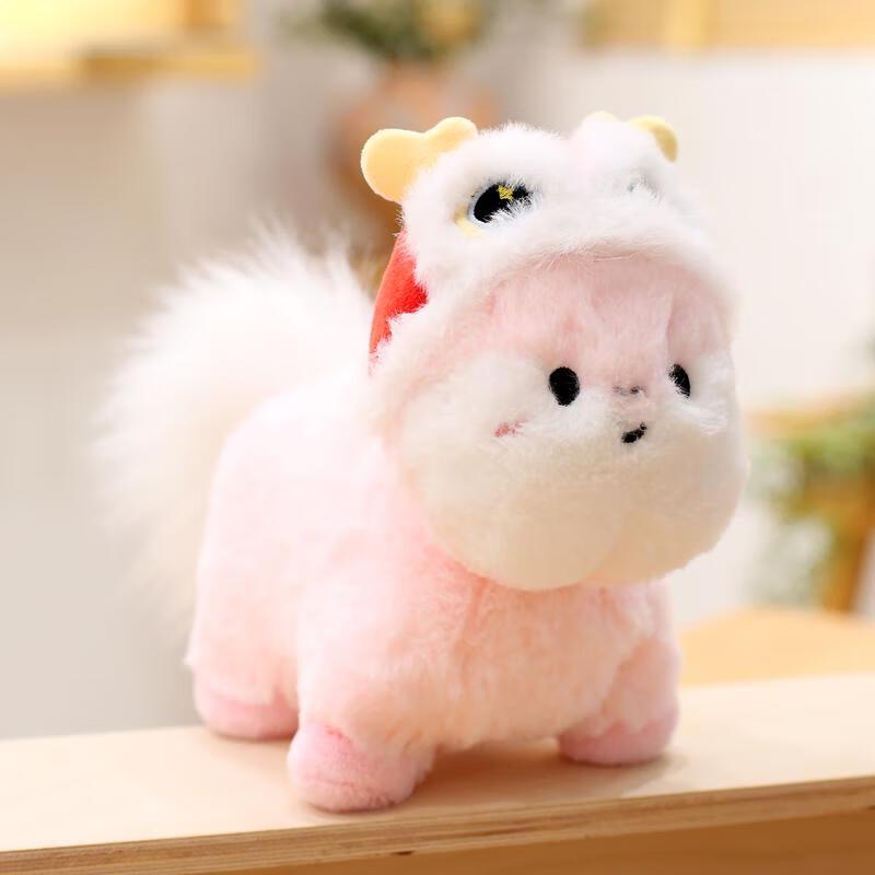 Celebrate the Year of the Horse with this adorable pink horse plush toy. Crafted from soft, high-quality materials, it features a charming lion dance hat, making it a unique and festive gift or collectible. Perfect for all ages, this cuddly companion brings good fortune and joy.