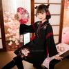 Японское платье кимоно женское черное белое вышитое платье с изображением кота юбки винтажная одежда юката хаори косплей вечеринка комплект из 2 предметов