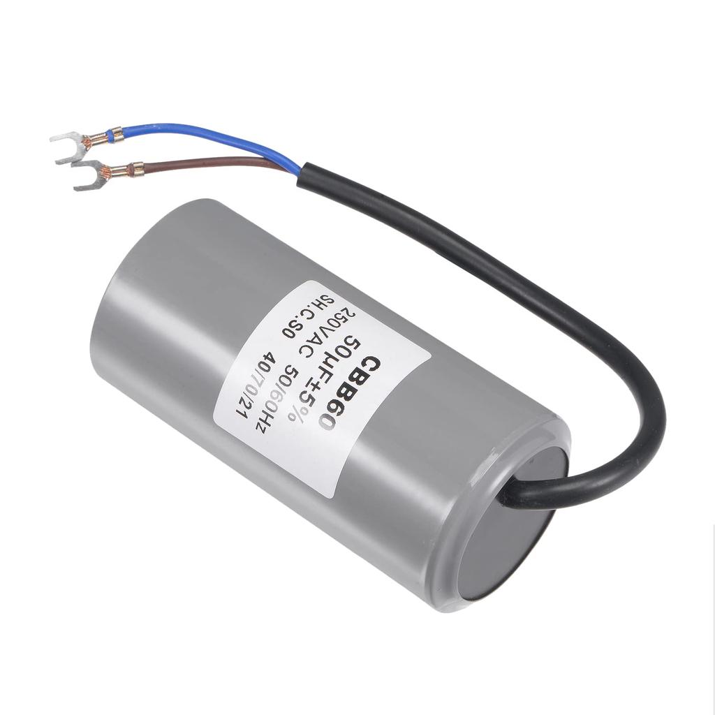 √Что вы получаете: В комплект входит 1 шт. пусковой конденсатор CBB60 для измерения длины провода: 180 мм, Размер корпуса: 105x50мм (Л*Д), Свинцовый конец: 2 провода с вилочными клеммами, Допуск: ±5%, Номинальная емкость: 50 мкФ , Номинальное напряжение: 250 В переменного тока, Номинальная частота: 50/60 Гц, Климатическая категория: 40/70/21