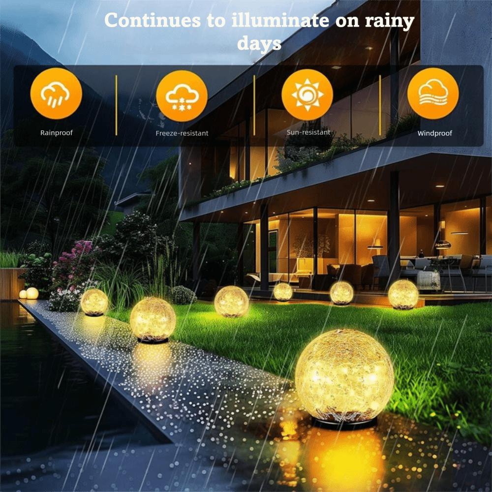 Waterproof Solar Globes Cracked Glass Solar Energy Solar Lights Auto on/Off Warm and Colorful Light LED Garden Lights Patio
