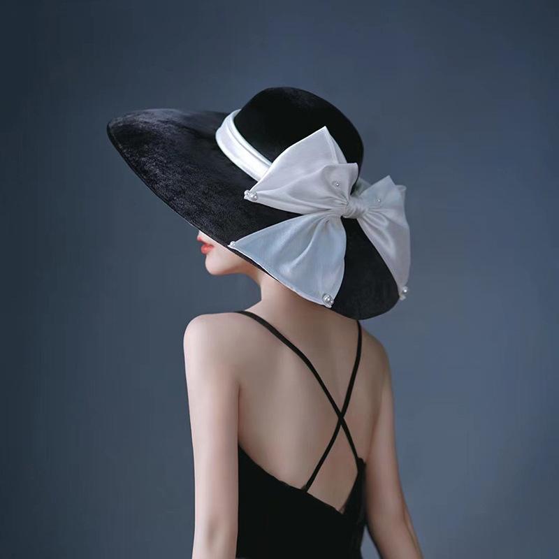 Зимняя теплая женская шляпа-федора из 100% шерсти, подиумная модель с ветровыми полями, с белым бантом и лентой для отдыха, женская теплая уличная шапка