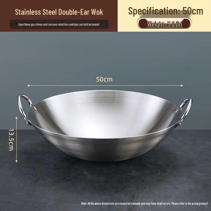 50cm Commercial Double-Handle Round Bottom Iron Wok — купить товар онлайн с бесплатной доставкой по всему миру!