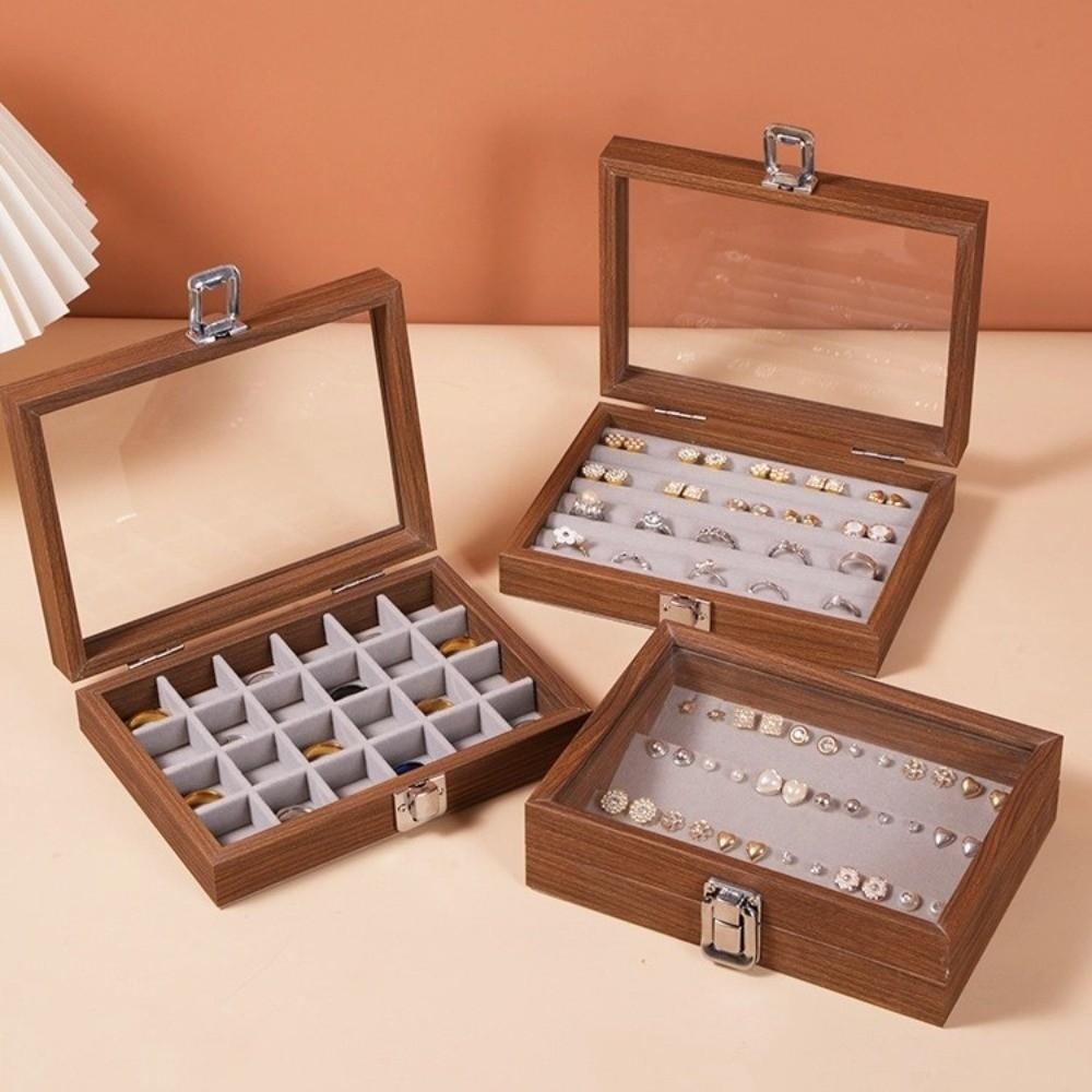 Walnut color Jewelry Box Dustproof Jewelry Display Box Vintage Ring Necklace Storage Box Earrings