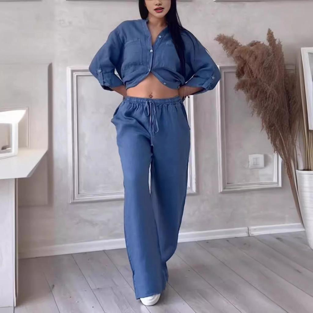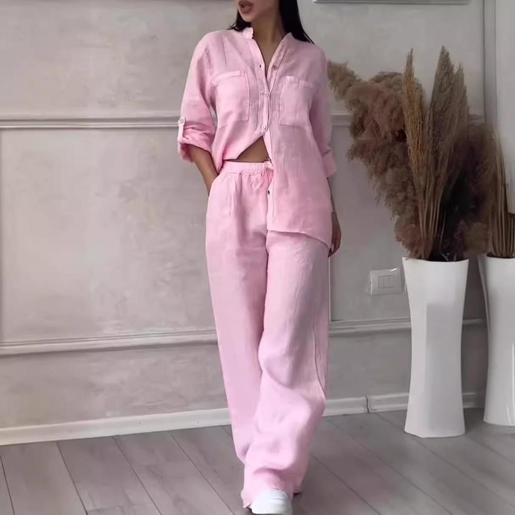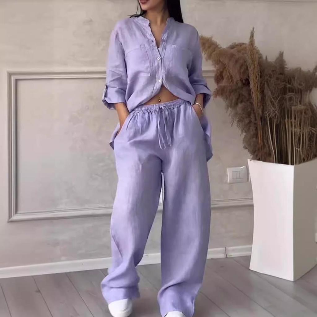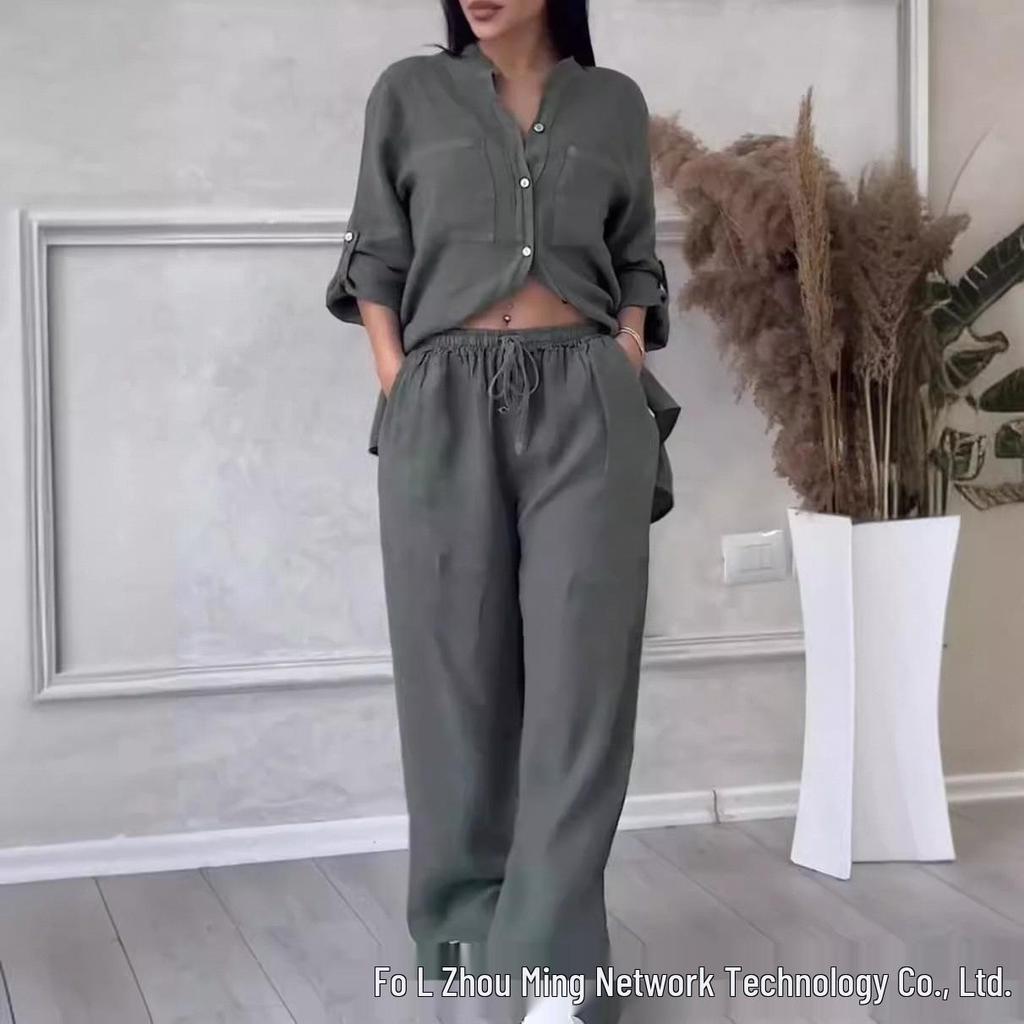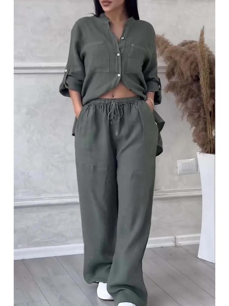 Откройте для себя непринужденный стиль и комфорт с этим повседневным комплектом из рубашки и брюк. Изготовленный из премиальной смеси хлопка и льна, комплект обеспечивает воздухопроницаемость и мягкость, идеально подходит для повседневной носки.. Рубашка имеет свободный крой, дополняющий спортивный стиль, что позволяет легко сочетать ее с различными аксессуарами.. Брюки-палаццо на кулиске добавляют нотку непринужденной изысканности, делая этот комплект универсальным дополнением к любому гардеробу.. Идеально подходит как для повседневных прогулок, так и для непринужденных светских мероприятий, сочетает в себе лучшее из комфорта и современной моды.