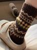 Норвежские шерстяные носки с узором Fair Isle и ромбами, с оборками - Теплые, Ретро, Этнический стиль, Зимняя одежда