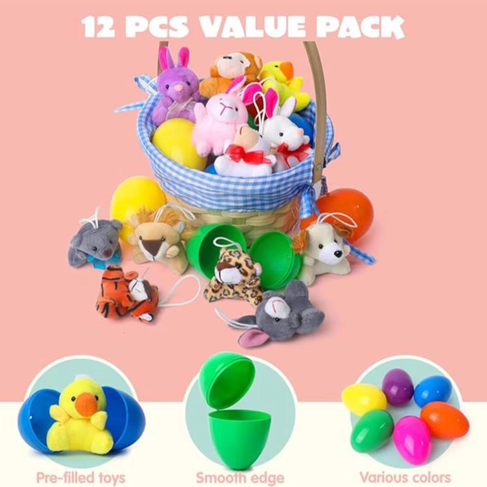 12/24 шт. Мини-наполненные пасхальные яйца с плюшевыми игрушками-животными, пасхальные яйца-сюрпризы, предварительно наполненные пасхальные яйца
