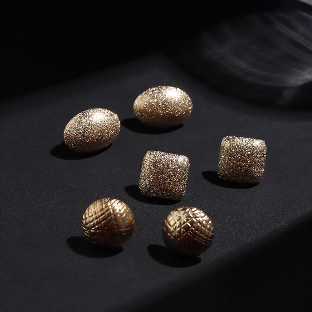 3Pairs/Set Women Metal Jewelry Geometry Pattern Scrub Gold Earrings Round Oval Punk